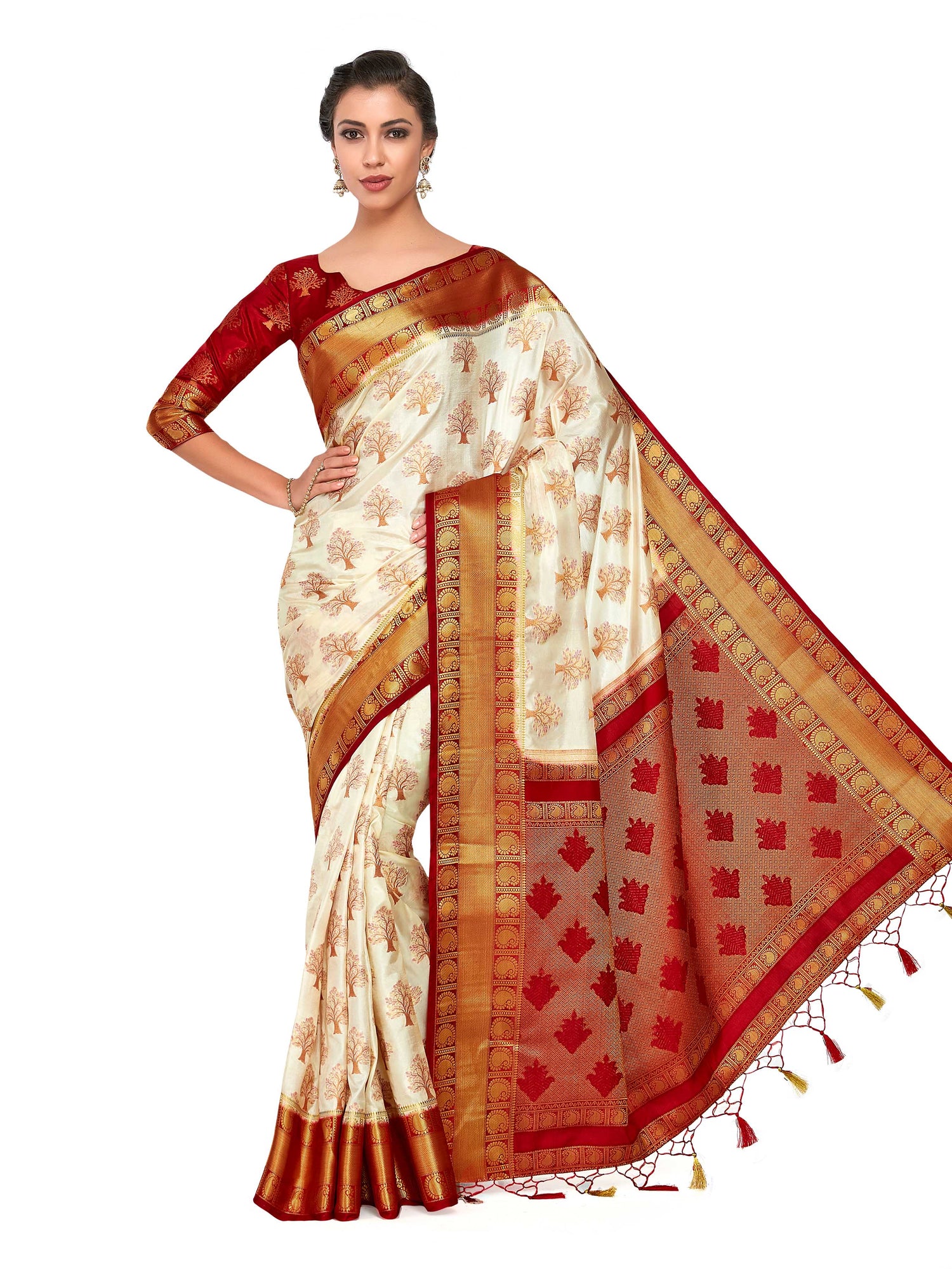 Mimosa Womens Art Silk Saree Kanjivaram Halfwhite Color