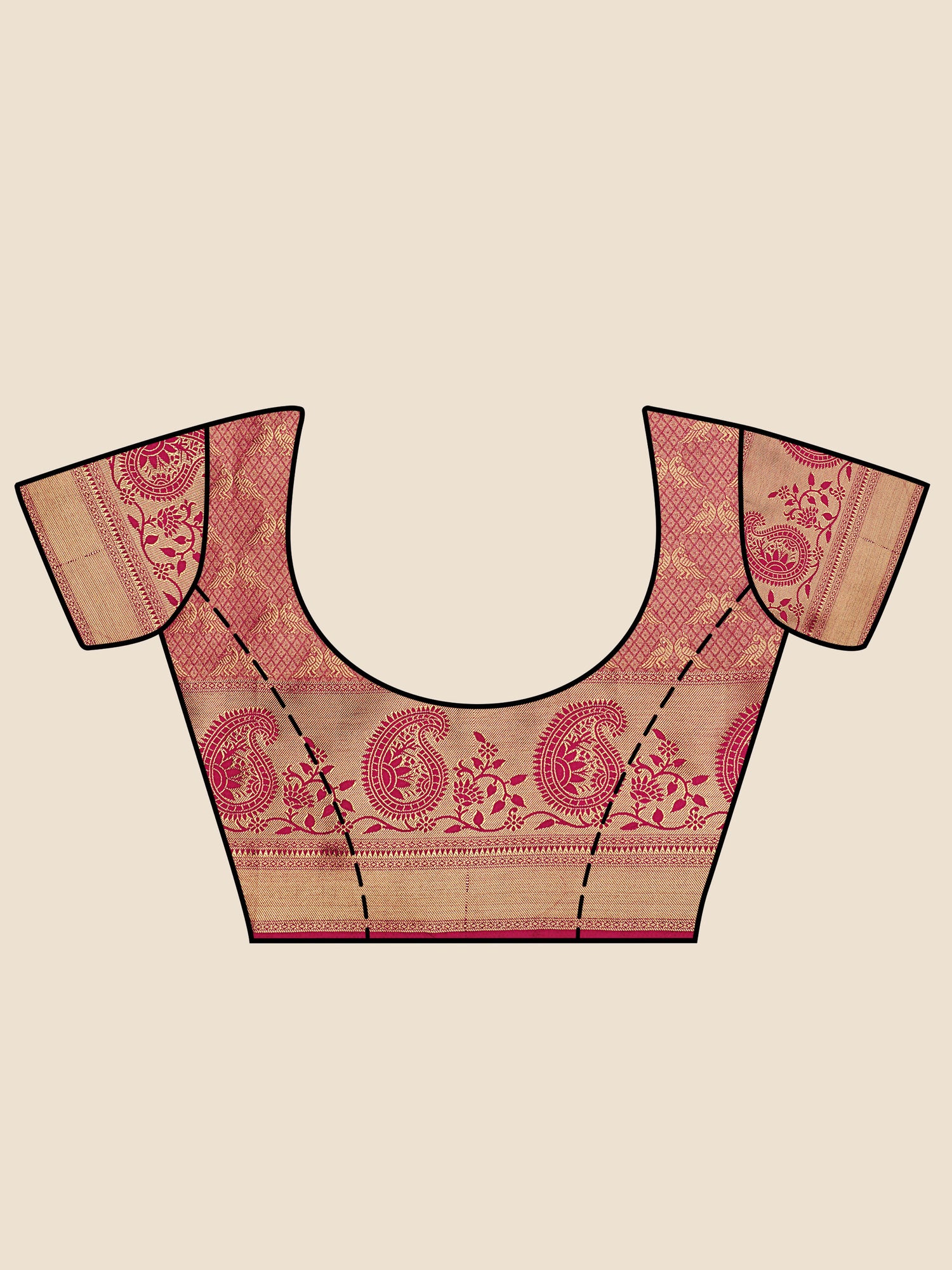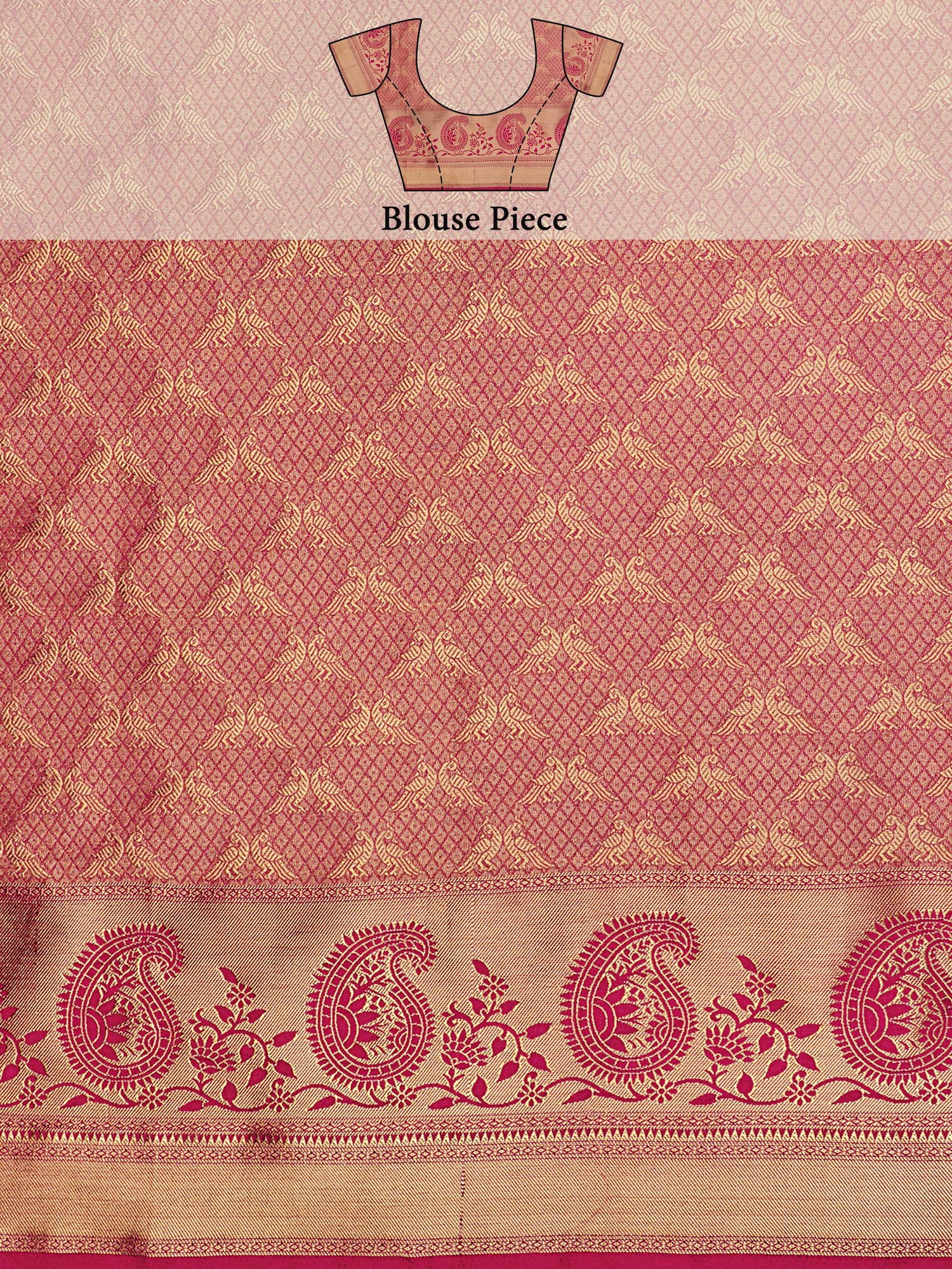Blouse Details : {Colour- PInk} { Fabric- Art Silk } {Length-0.80 Unstitched Blouse Attached At the End Of Saree } {Width-44 Inches } { Type- Contrast Blouse }