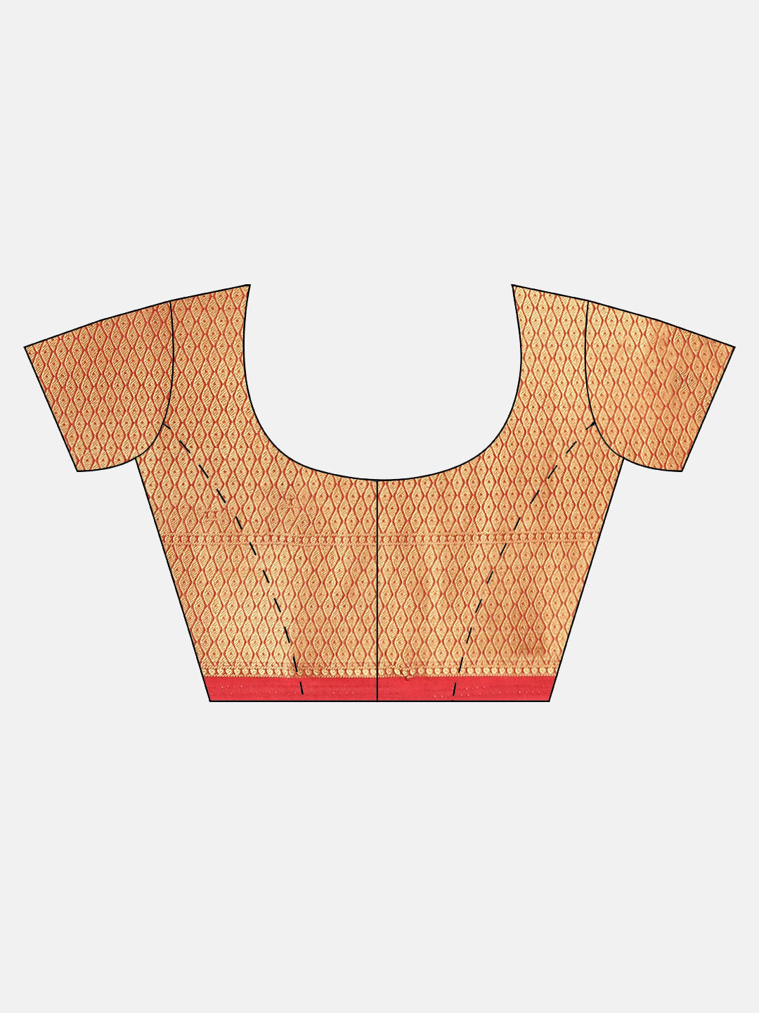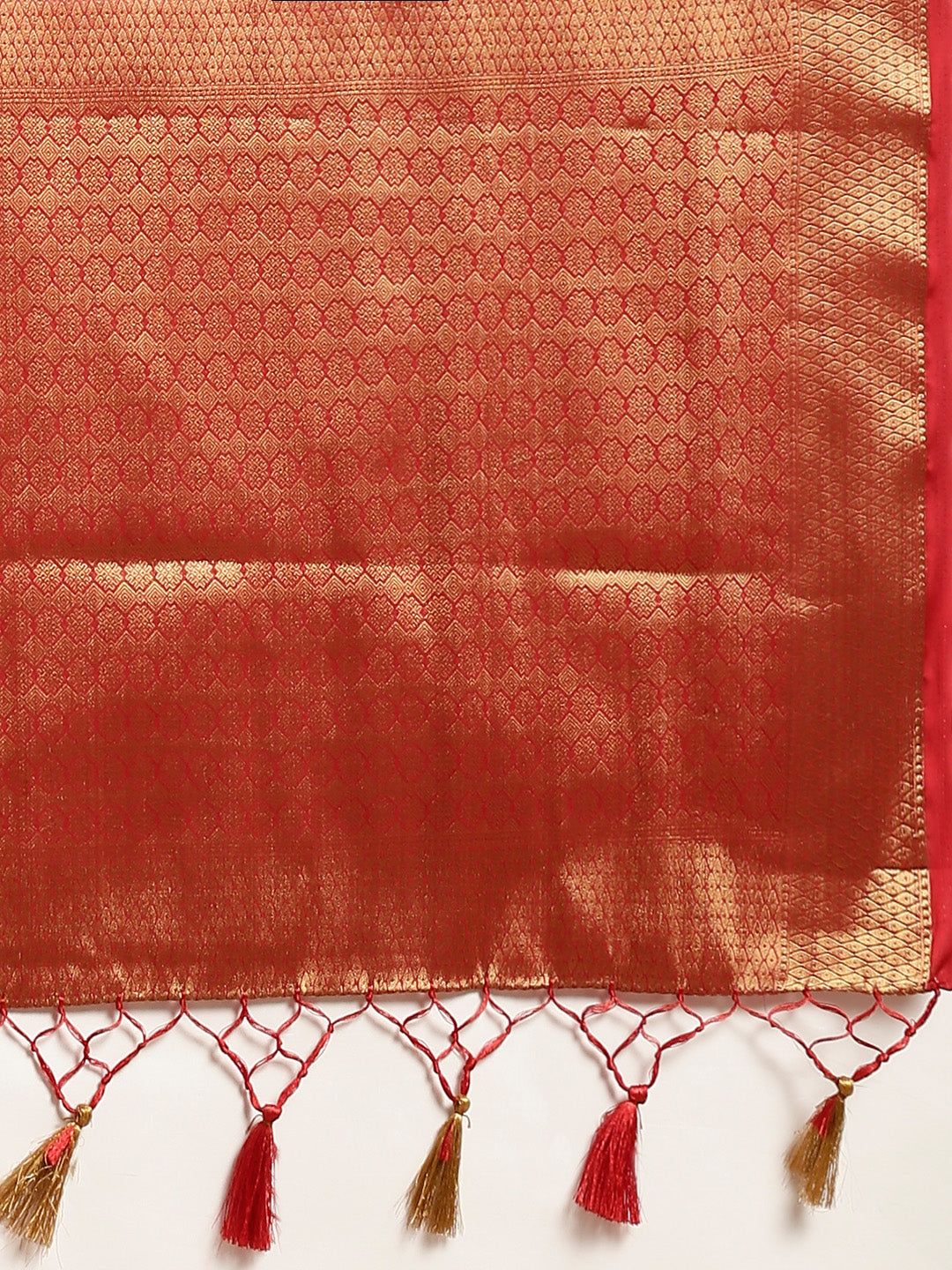 Blouse Details : {Colour- Red} { Fabric- Crepe } {Length-0.80 Unstitched Blouse Attached At the End Of Saree } {Width-44 Inches } { Type- Contrast Blouse }