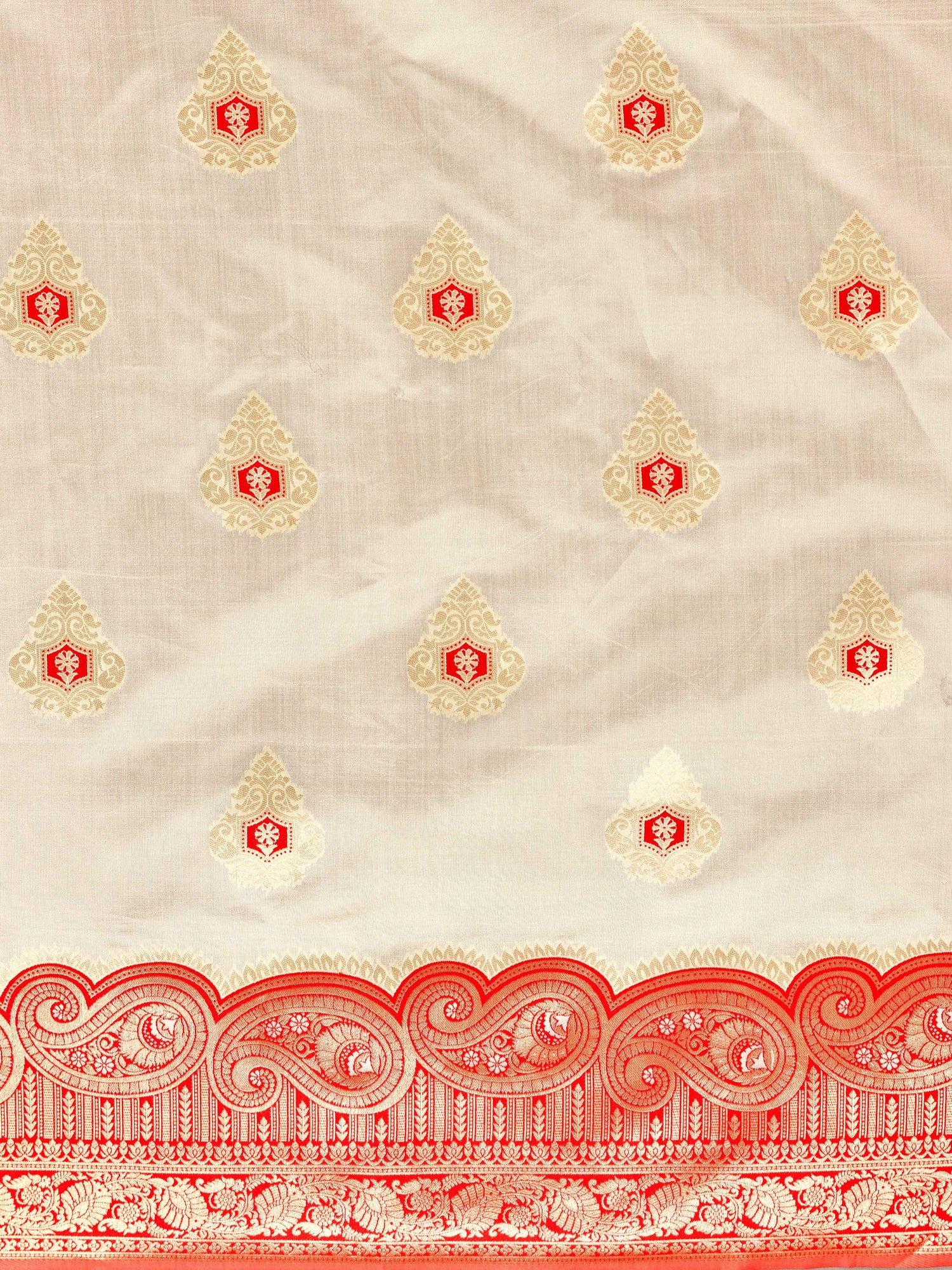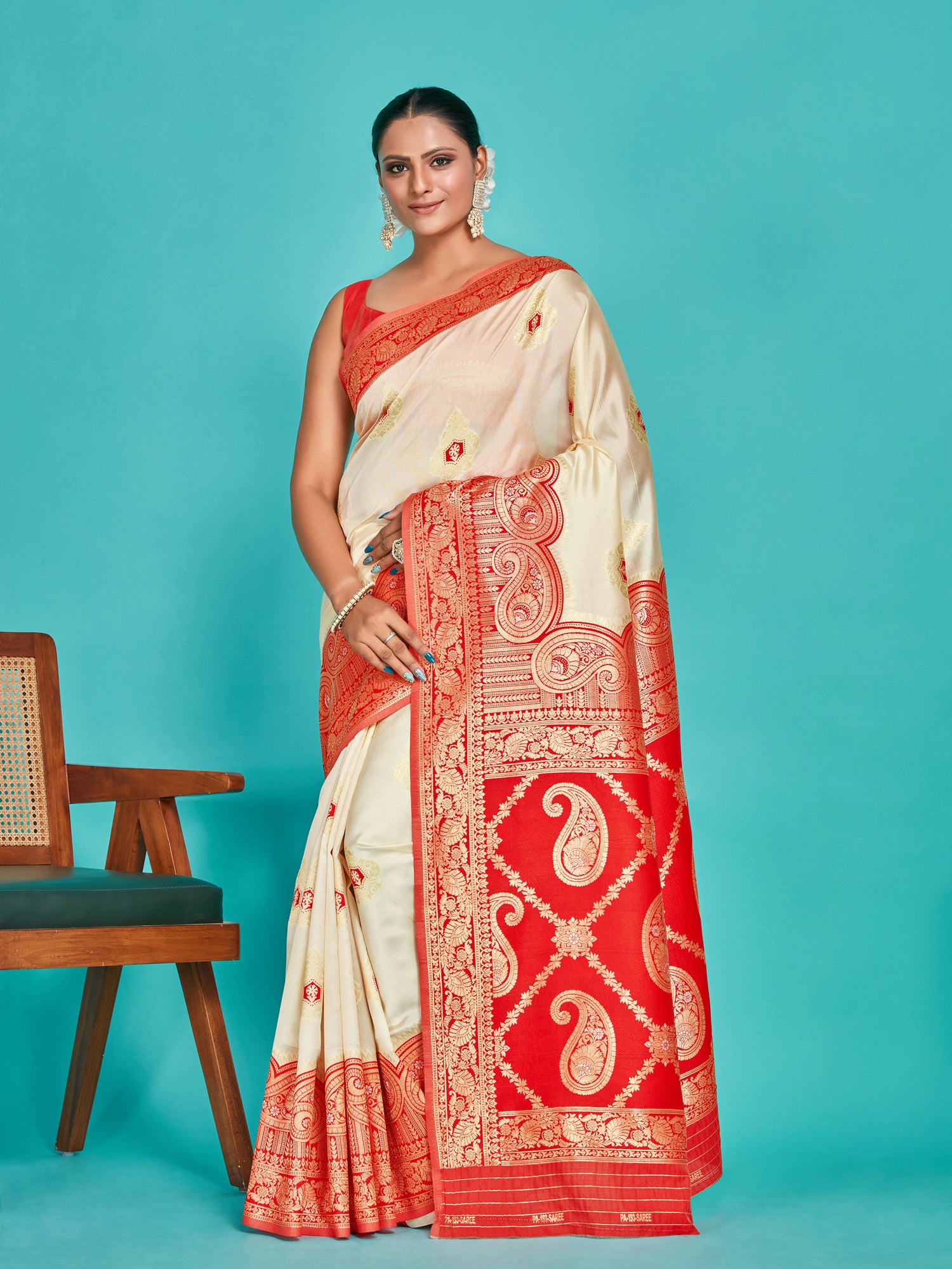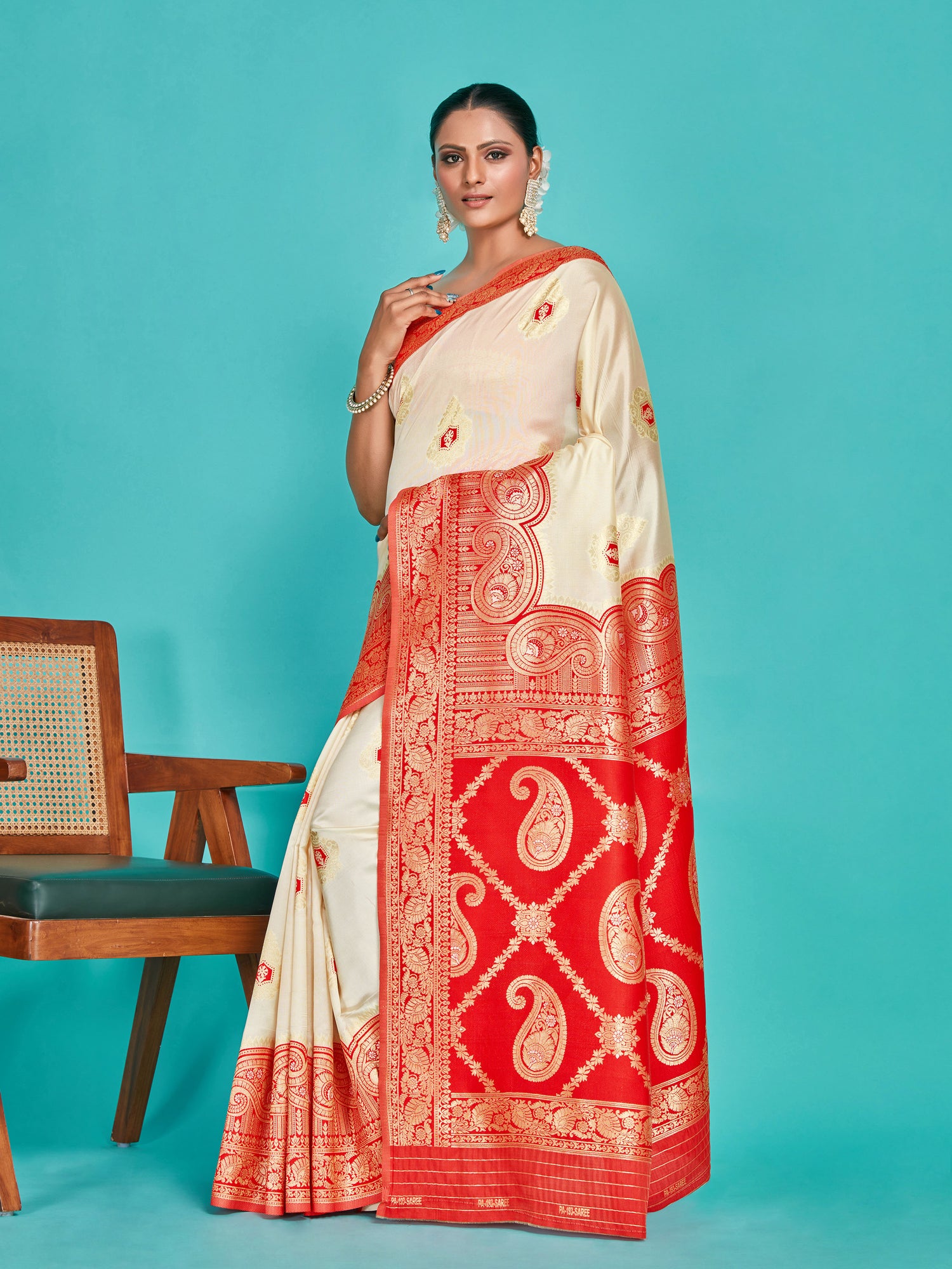 Saree Details : { Colour- White } { Fabric- Art Silk } { Length-5.4 mts+0.80 Mts Blouse=Total 6.2 Mts} { Width-44 Inches } { Work Type- Woven Mixture Of Zari And Woven Thread design All over }