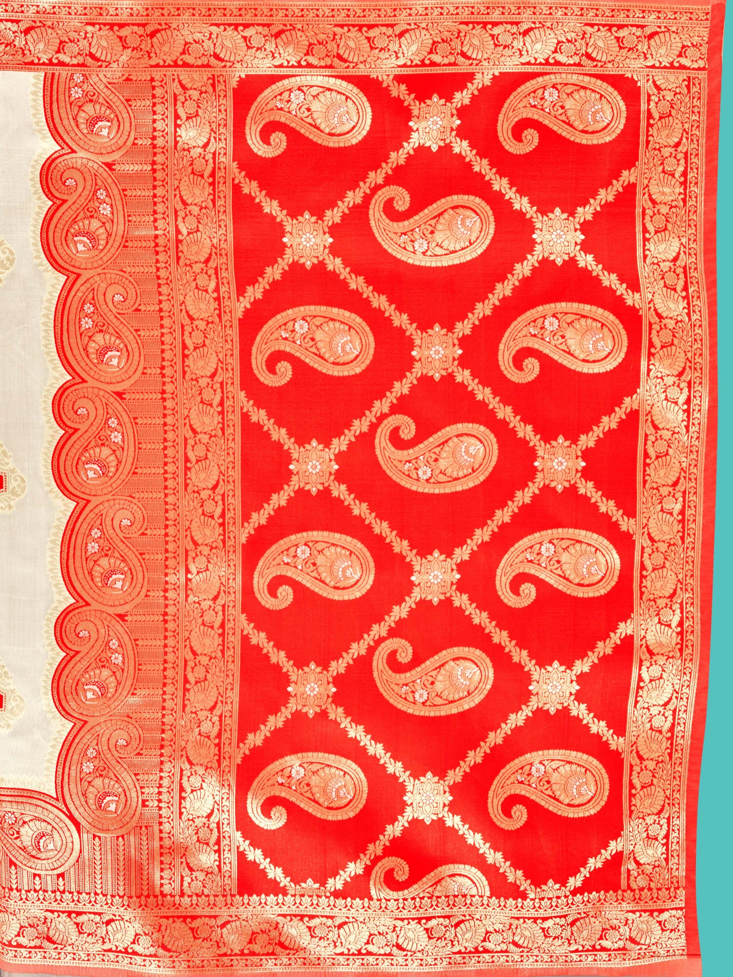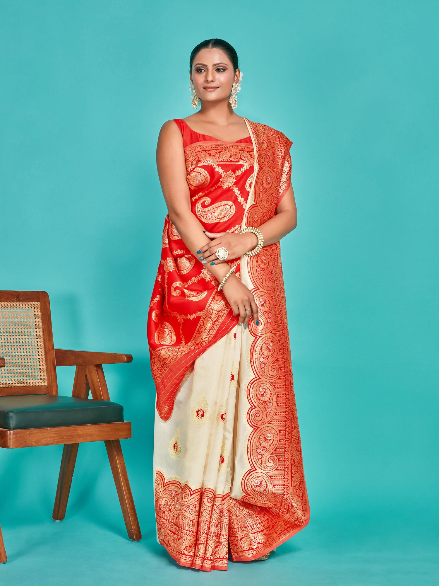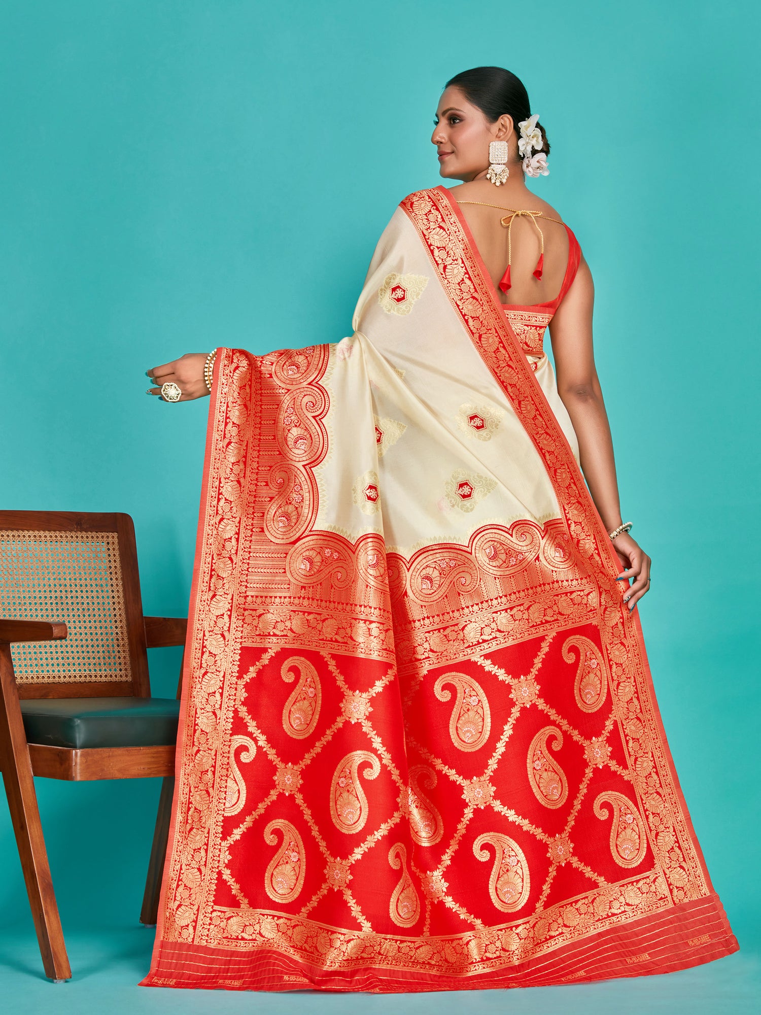 Saree Details : { Colour- White } { Fabric- Art Silk } { Length-5.4 mts+0.80 Mts Blouse=Total 6.2 Mts} { Width-44 Inches } { Work Type- Woven Mixture Of Zari And Woven Thread design All over }