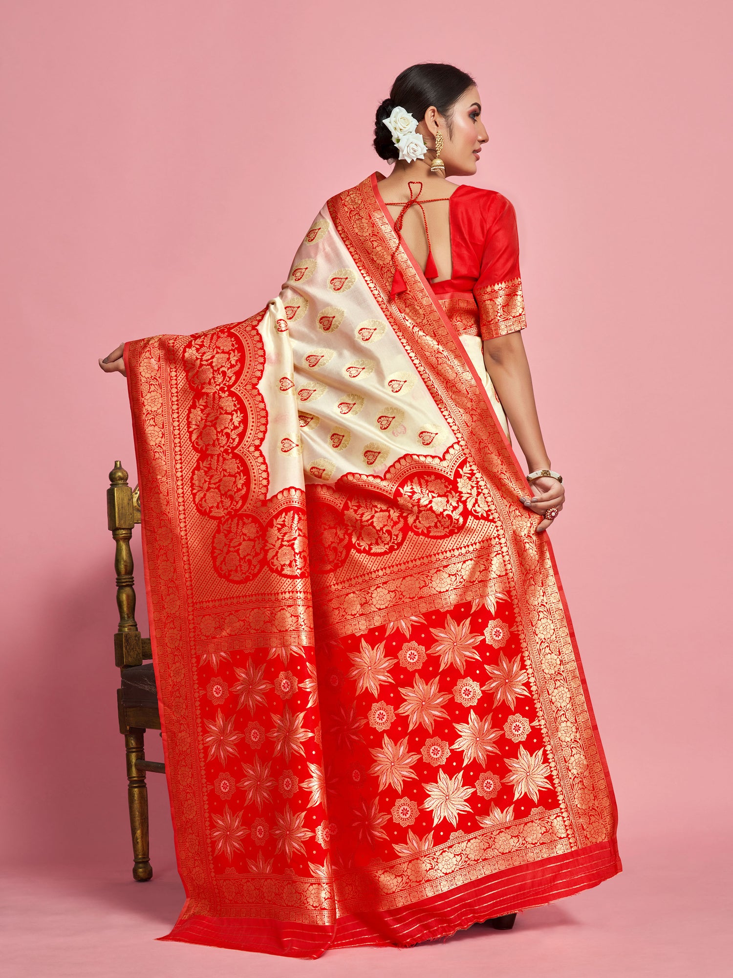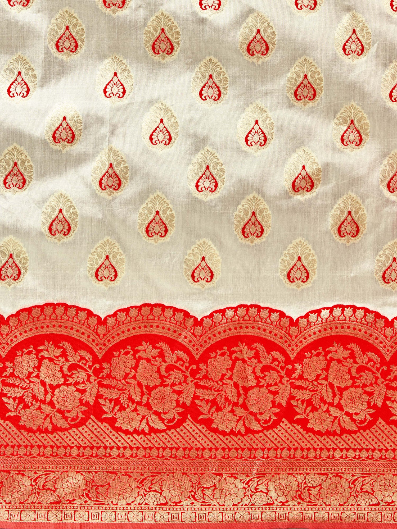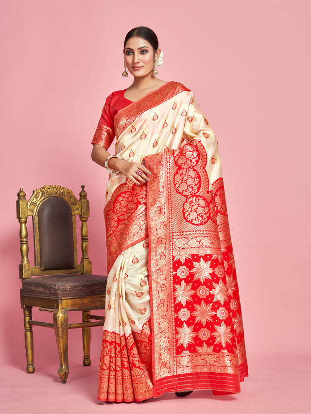 Saree Details : { Colour- White } { Fabric- Art Silk } { Length-5.4 mts+0.80 Mts Blouse=Total 6.2 Mts} { Width-44 Inches } { Work Type- Woven Mixture Of Zari And Woven Thread design All over }
