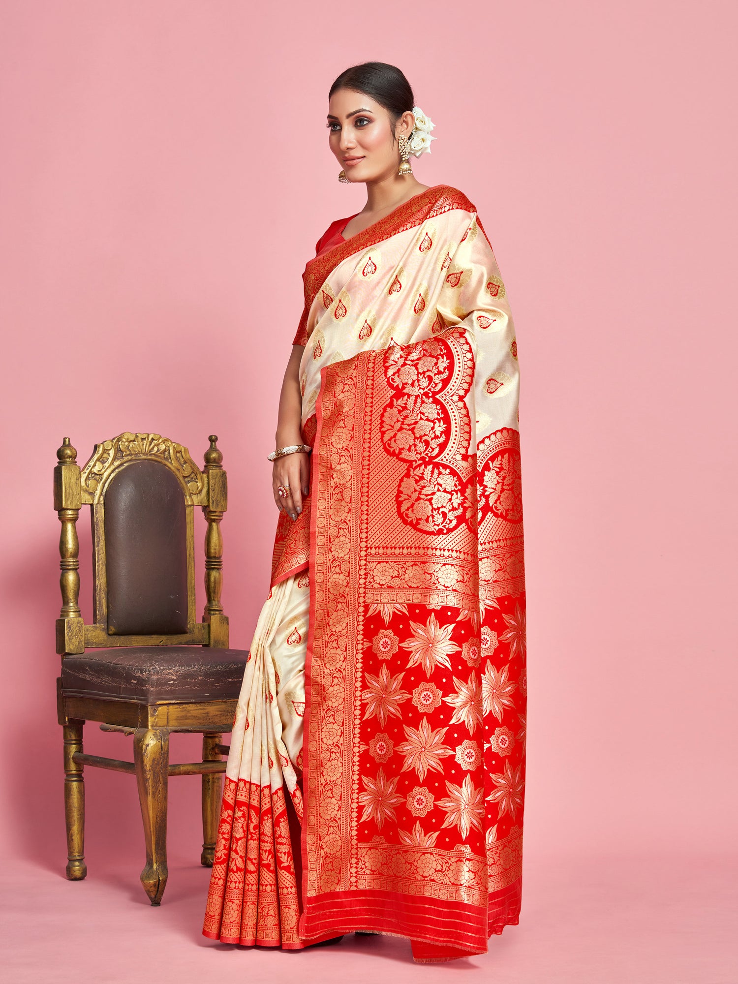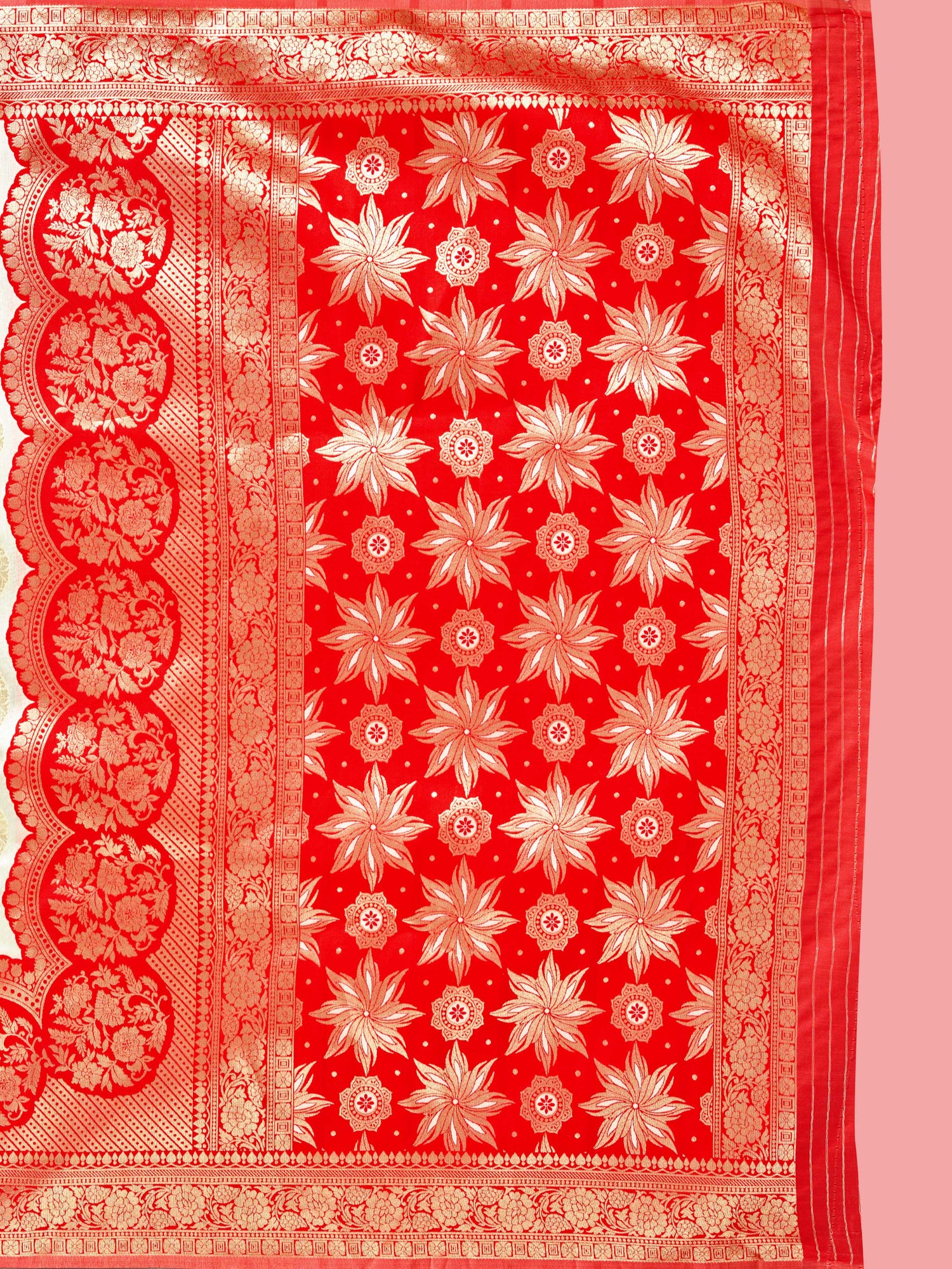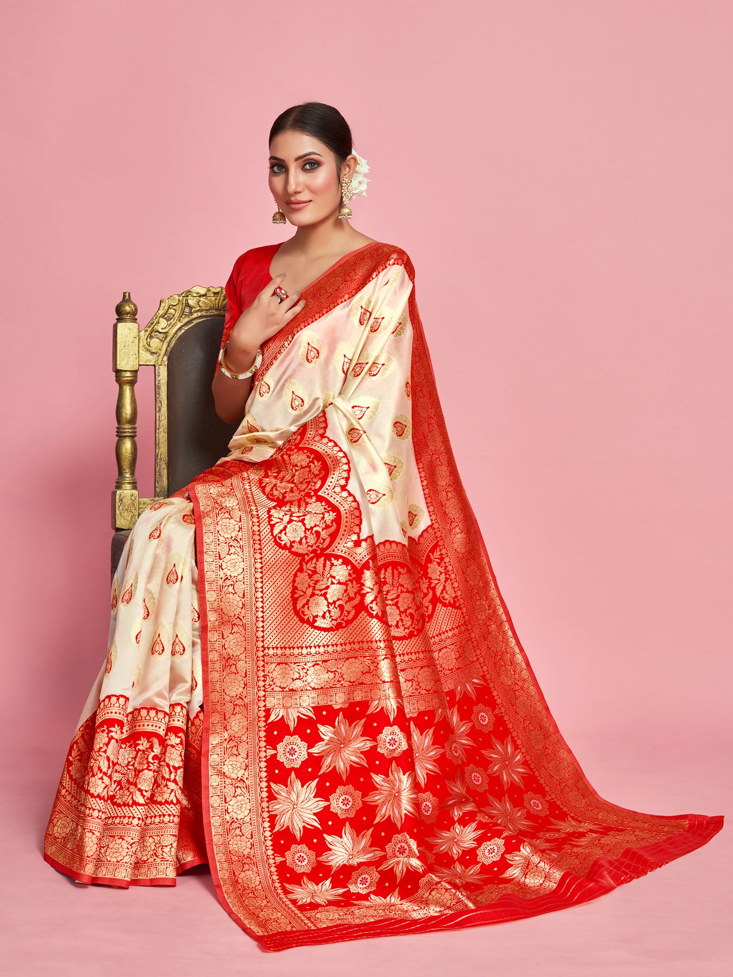 Saree Details : { Colour- White } { Fabric- Art Silk } { Length-5.4 mts+0.80 Mts Blouse=Total 6.2 Mts} { Width-44 Inches } { Work Type- Woven Mixture Of Zari And Woven Thread design All over }
