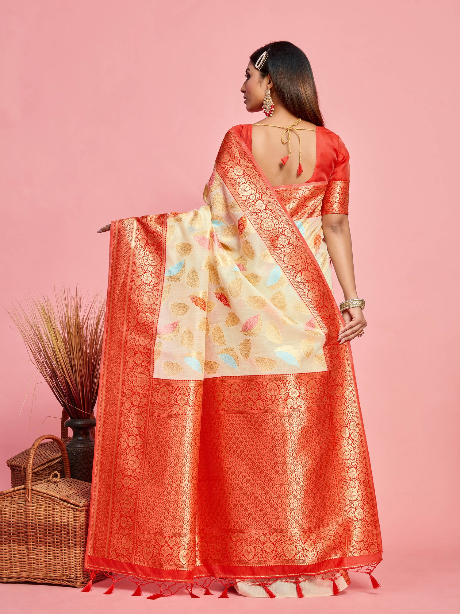 Mimosa Women's Woven Design Kanjivaram Linen Saree With Blouse Piece : SA00001245OFWFREE