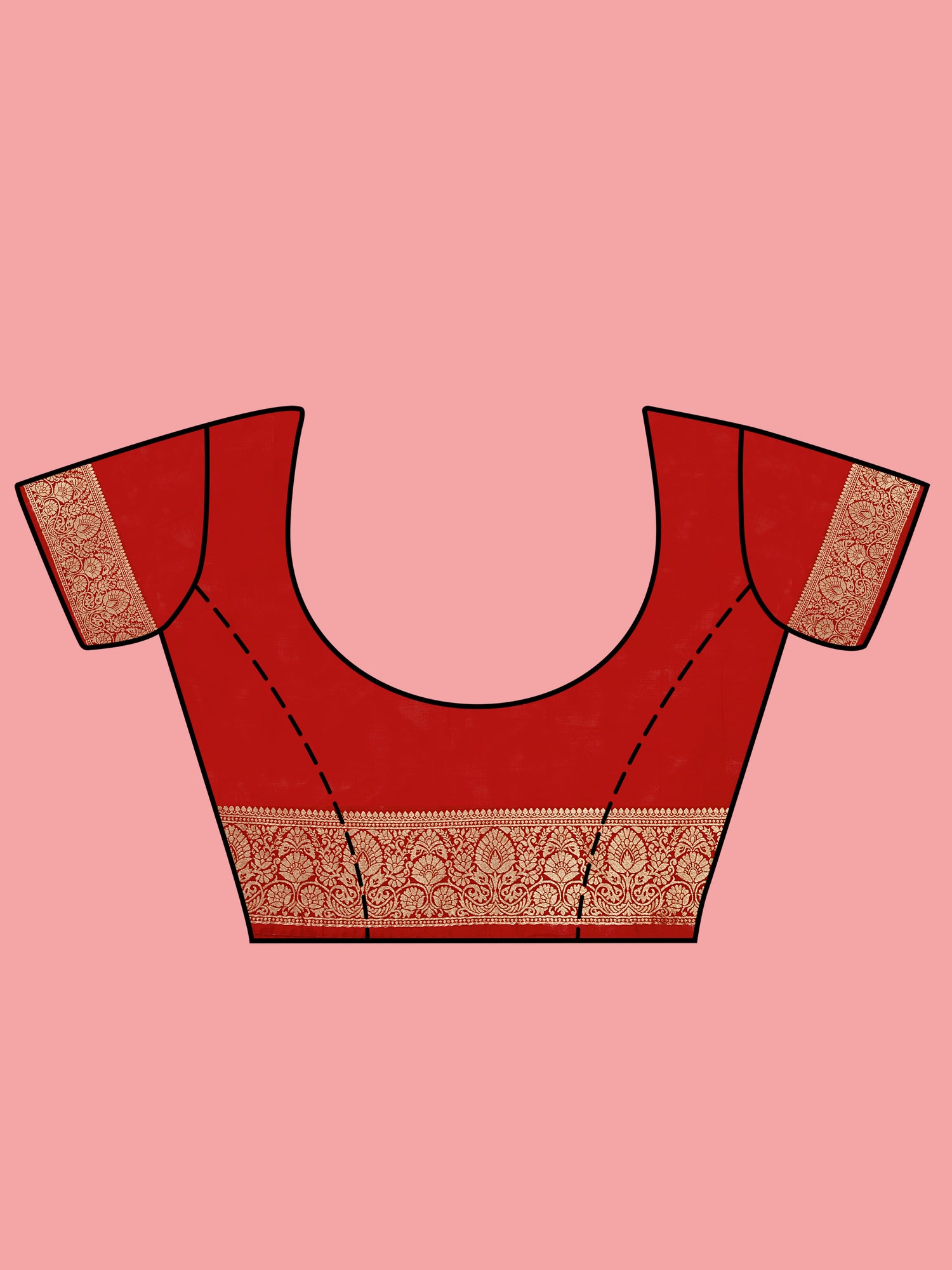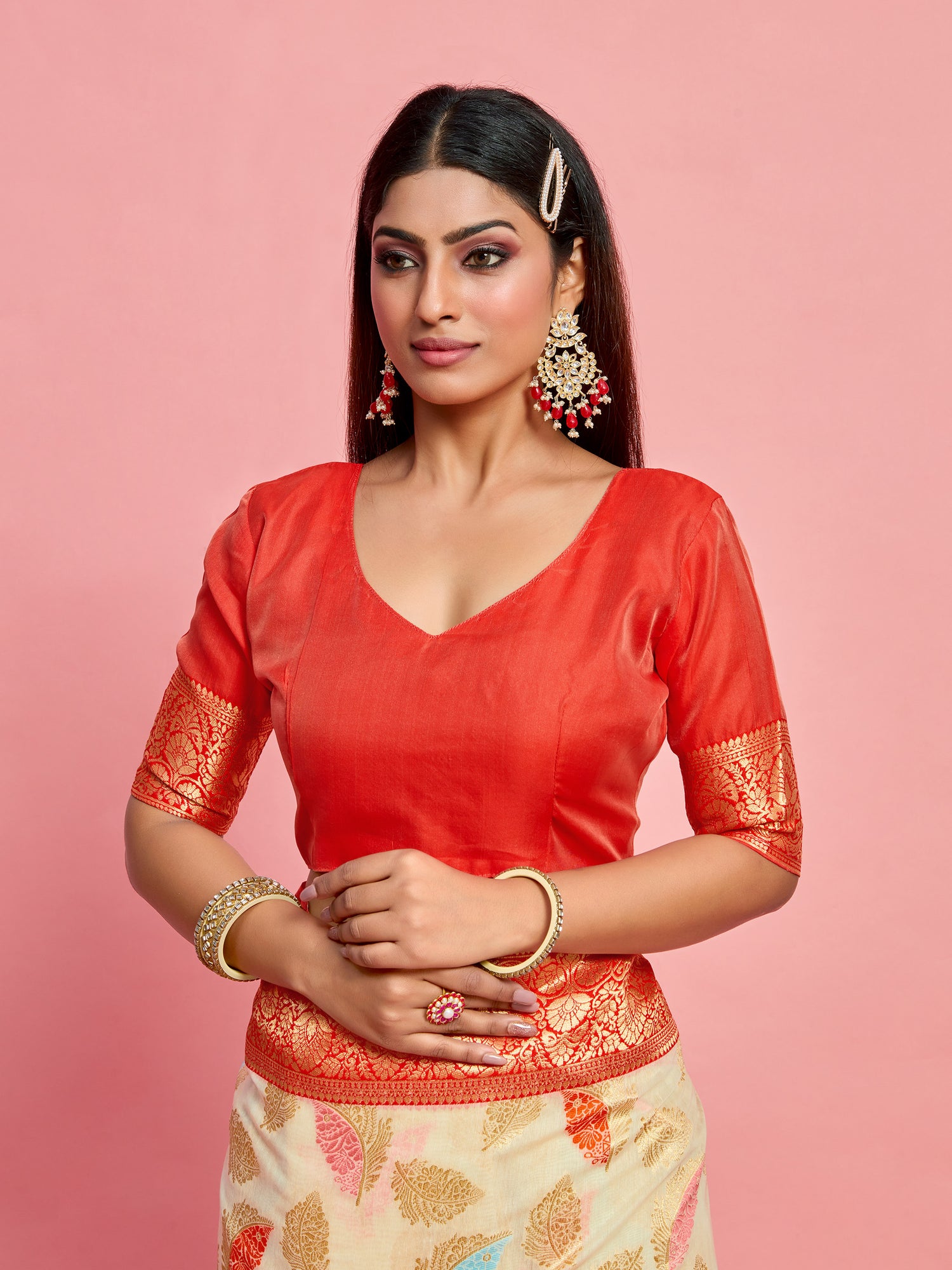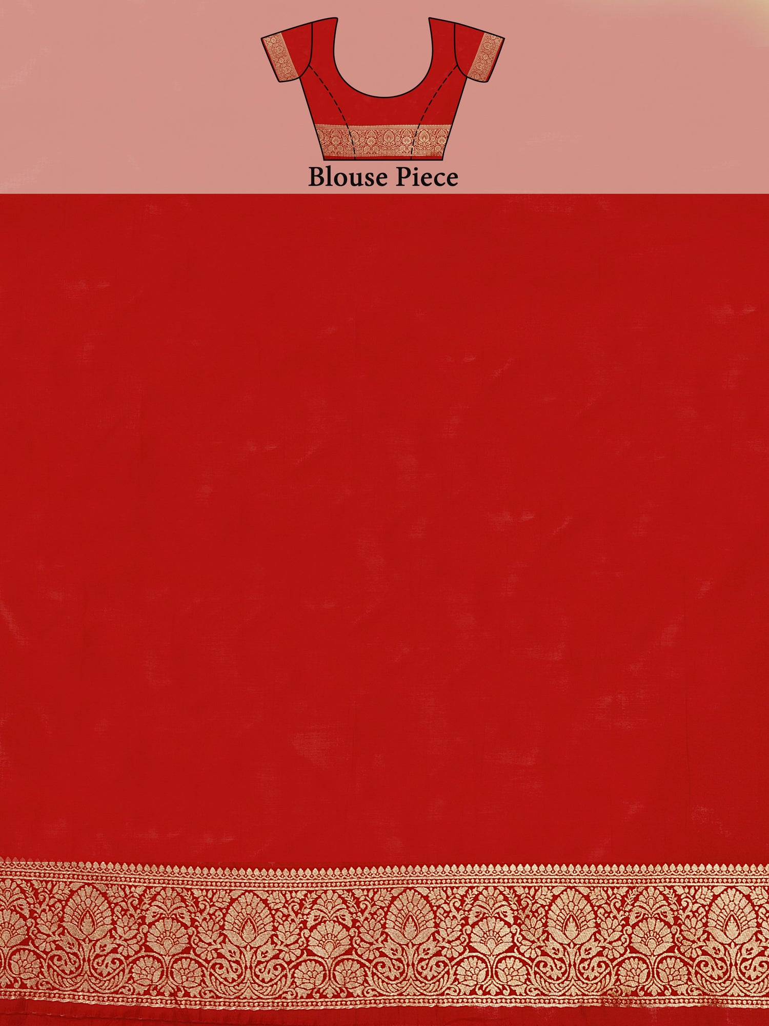 Blouse Details : {Colour- Red} { Fabric- Linen } {Length-0.80 Unstitched Blouse Attached At the End Of Saree } {Width-44 Inches } { Type- Contrast Blouse }