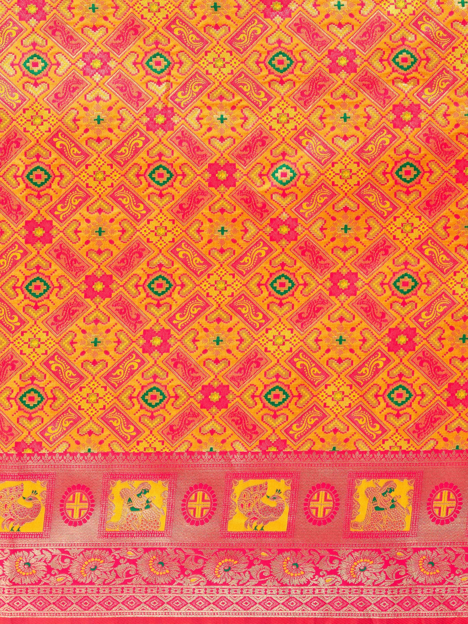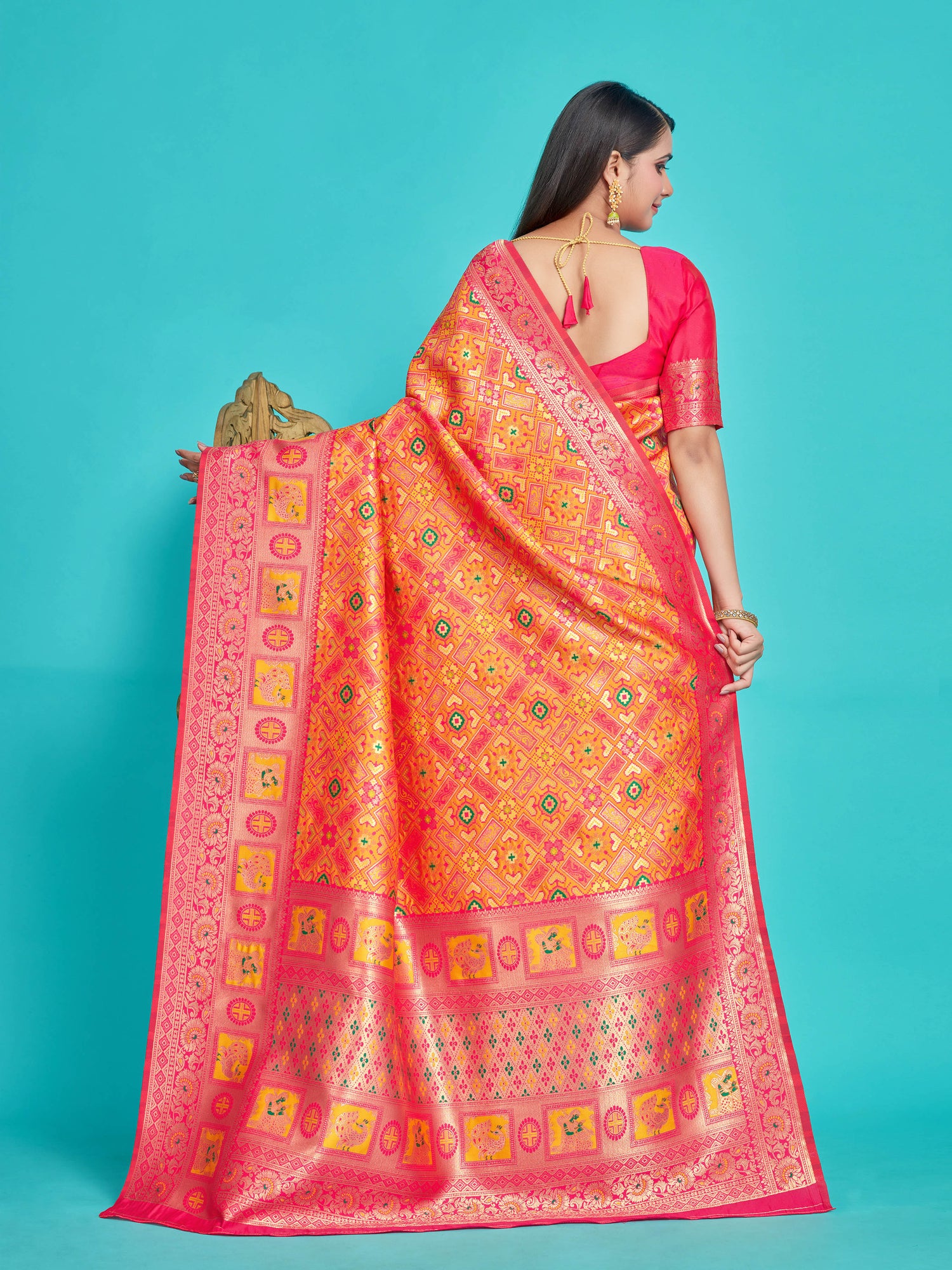 Mimosa Women's Woven Design Patola Style Art Silk Saree With Blouse Piece : SA00001344GDFREE