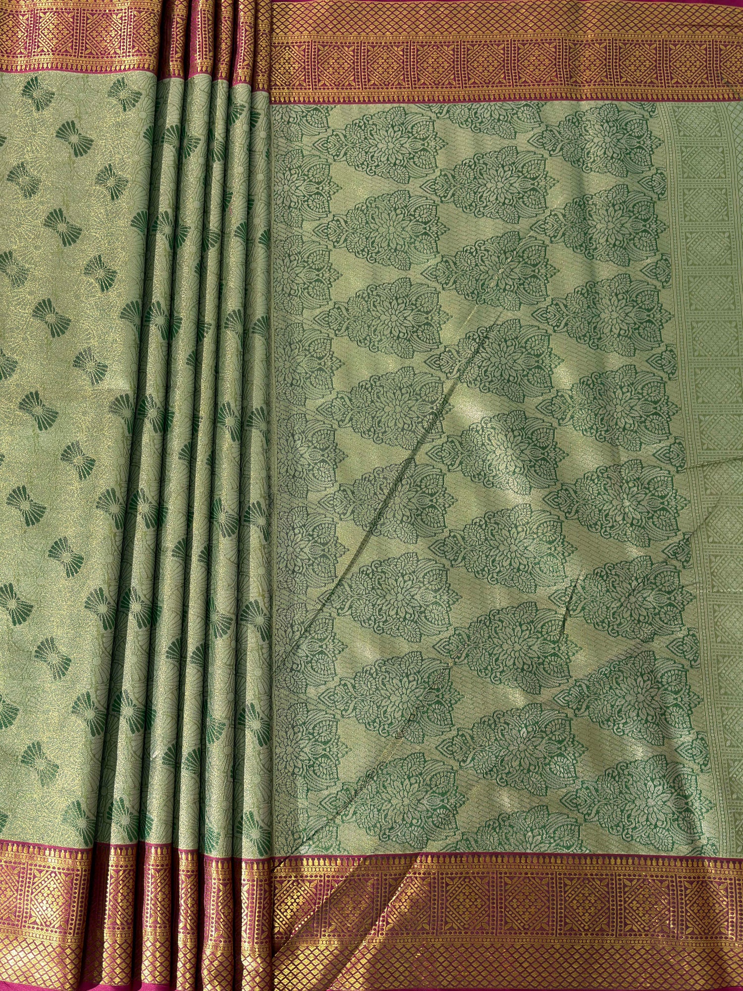 - Blouse: Matching Green color unstitched blouse piece (attached inside saree)