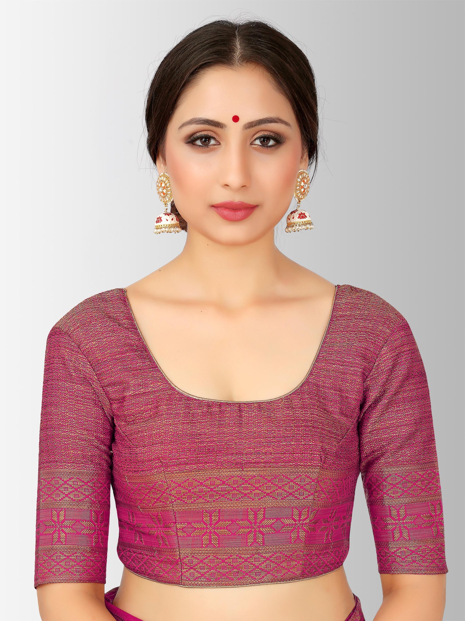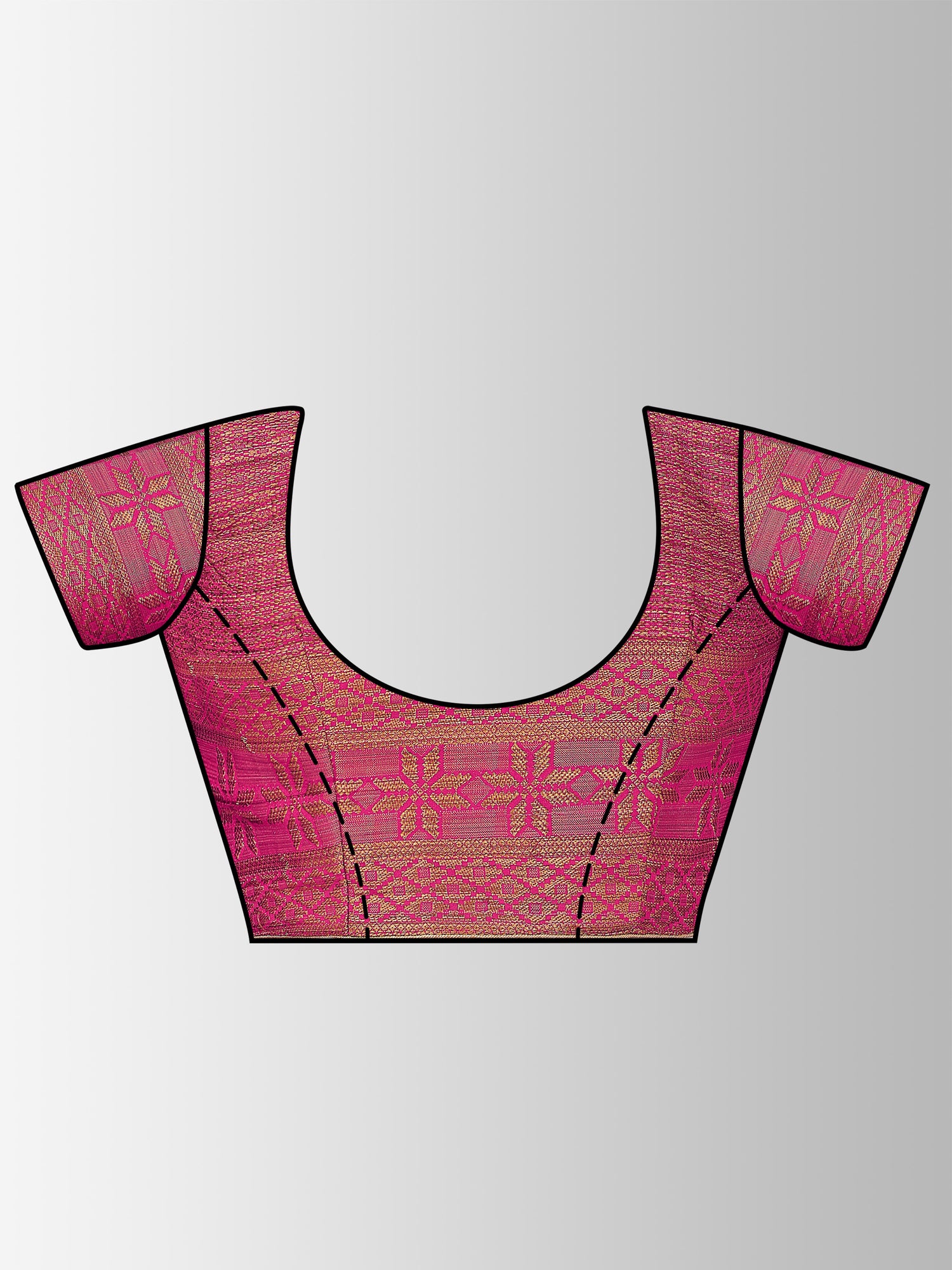 Blouse Details : {Colour- Pink} { Fabric- Art Silk } {Length-0.80 Unstitched Blouse Attached At the End Of Saree } {Width-44 Inches } { Type- Contrast Blouse }
